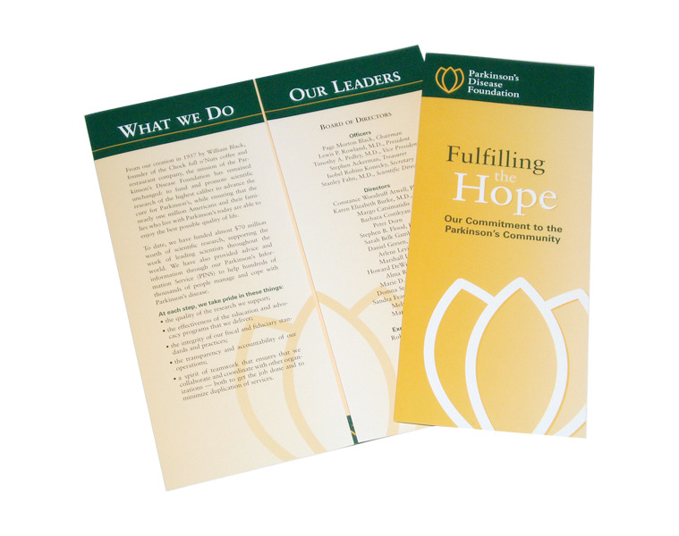 Parkinson's disease foundation brochure designs.