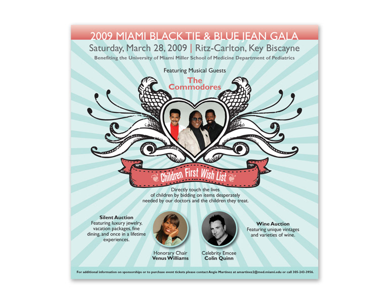 Brochure, Invitation and Ad Design for University of Miami Miller School of Medicine Gala event.